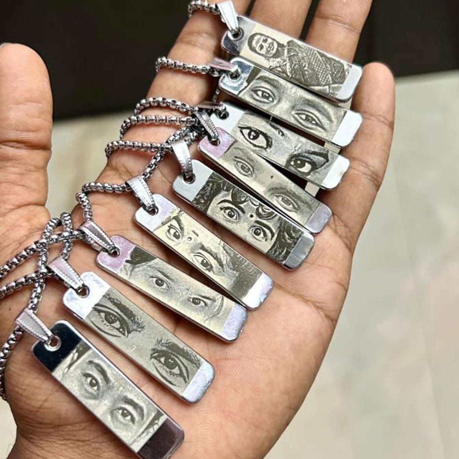 This exquisite necklace features a personalized engraving of an eye, making it a truly unique piece of jewelry. Perfect for commemorating special moments, this pendant can be customized with a photo that holds sentimental value. Crafted with precision, it’s an ideal gift for birthdays, anniversaries, or any special occasion. Show your loved ones how much they mean to you with this thoughtful and stylish accessory that’s sure to be cherished for years to come.